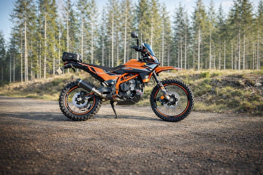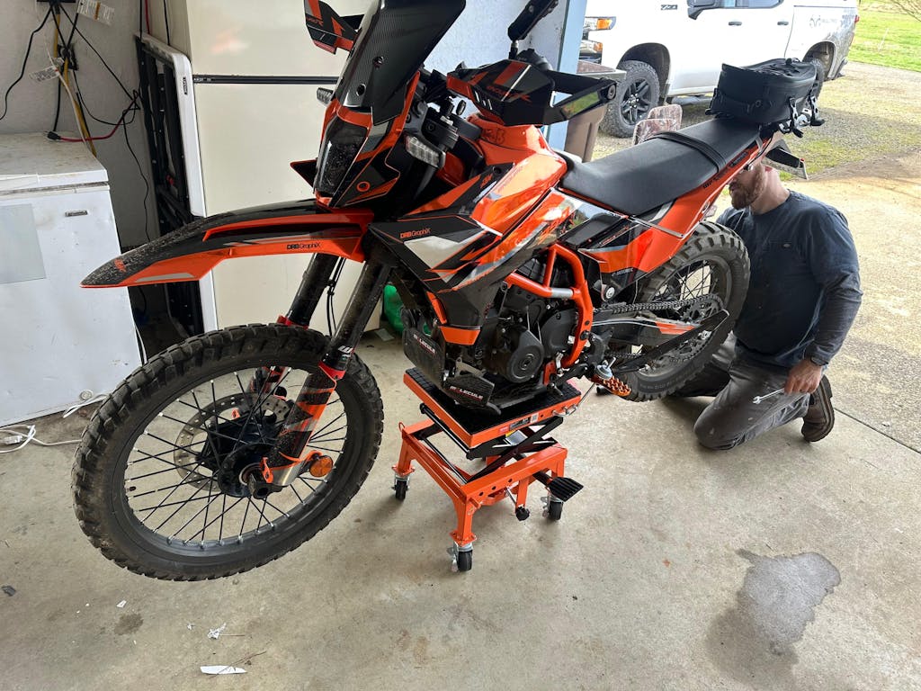 The KTM 250/390 Adventure Skid Plate is the first of its kind crafted from 3/8″ (9.5 mm) thick billet UHMW — a material with 10× the wear resistance of carbon steel and outstanding sound-dampening properties. Rocks and debris hit with a muted thud, not a deafening clang.